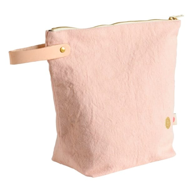 Deze zachtroze toilettas is niet alleen leuk om te zien, hij is ook nog hartstikke praktisch omdat hij wat hoger is dan de standaard toilettassen.