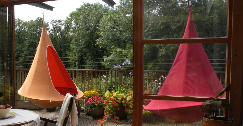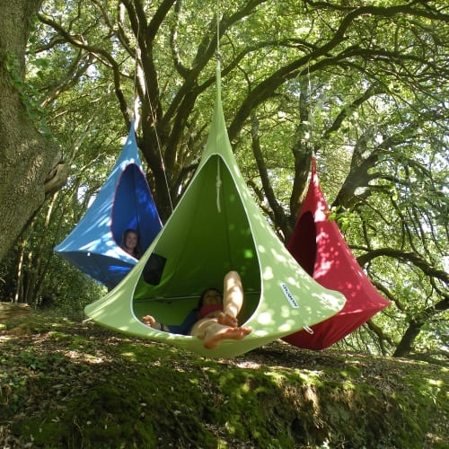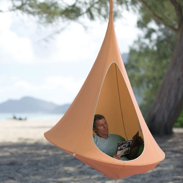 Niets lekkerder dan relaxen in de tuin. Deze Cacoon hangende tent maakt het wel heel erg relaxed.
