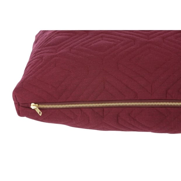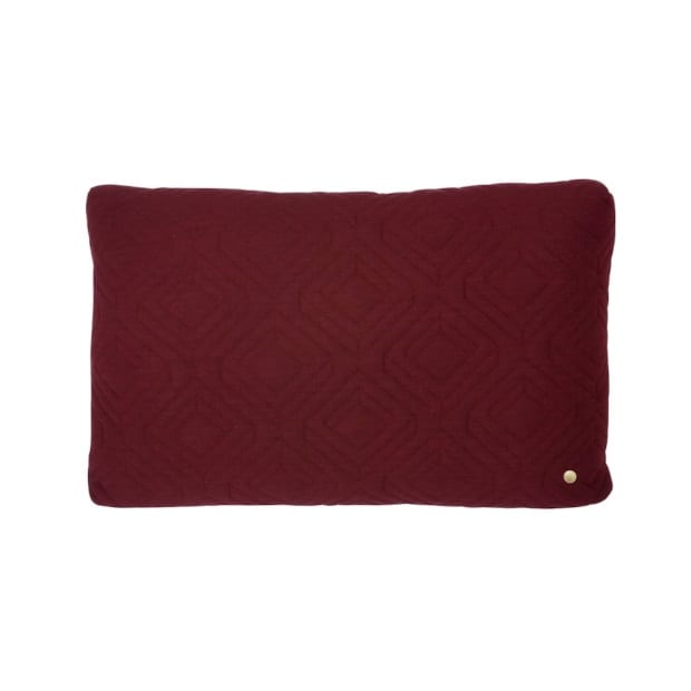 Ik ben al druk op zoek geweest naar kussens die matchen bij onze donkergroen velours bank. Best lastig bleek al snel. De kleur mosterdgeel past er perfect bij, echter heb ik hier al een jaar tegenaan gekeken in het vorige huis en ben ik er toch echt wel op uitgekeken. Op zoek dus naar een andere kleur die goed past bij onze bank. De rijke stof en bordeaux rode kleur van dit quilt kussen van Ferm Living staat momenteel op nummer 1.