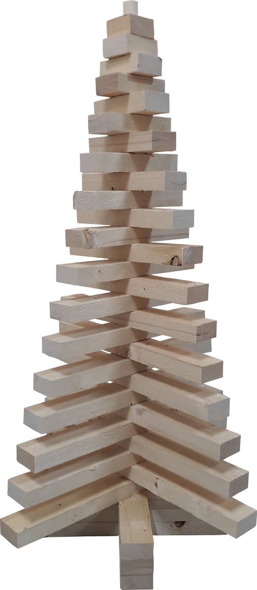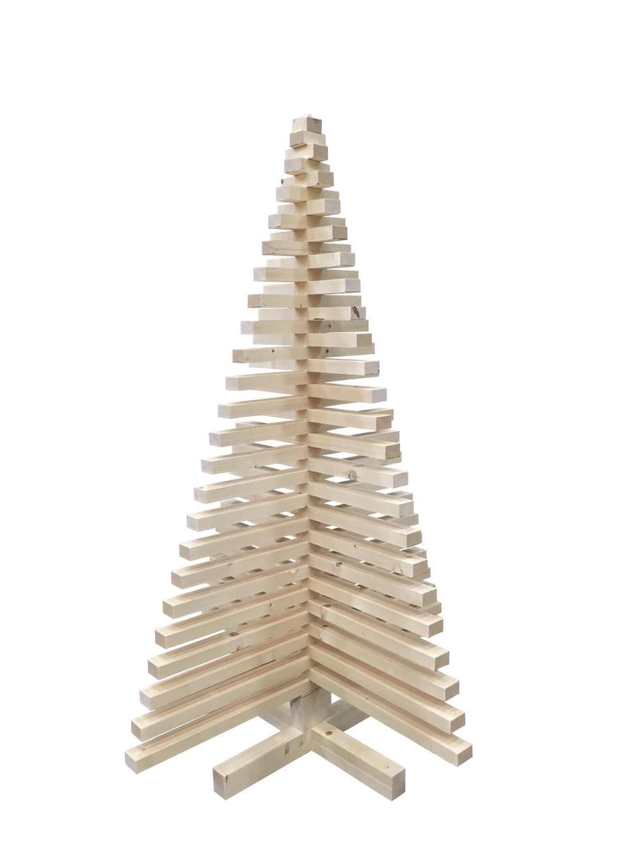 Deze variant is vergelijkbaar met de hierboven getoonde kerstboom, echter is deze kerstboom gemaakt van dennenhout. Deze houten kerstboom wordt geproduceerd in België en is daarmee een duurzame keuze. De boom heeft een afmeting van 162 cm hoog en 100 cm in doorsnede.