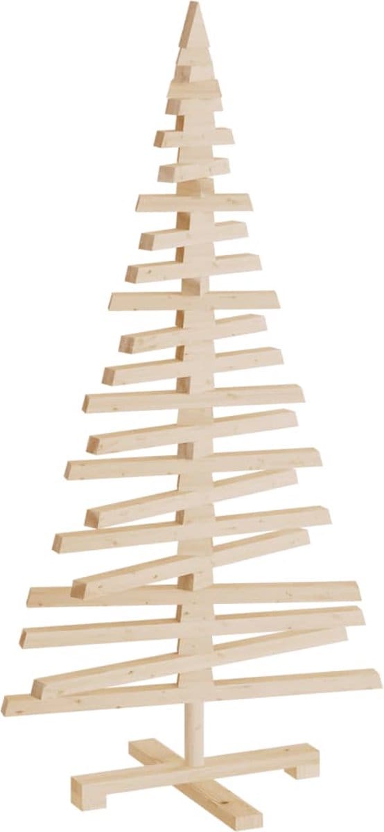 Onze laatste variant die we hebben gevonden is een kerstboom in drie verschillende afmetingen. Deze houten boom is verkrijgbaar in de hoogtes 60, 90 en 120 cm. Deze variant is gemaakt van grenenhout en is voor zowel binnen als buiten geschikt.