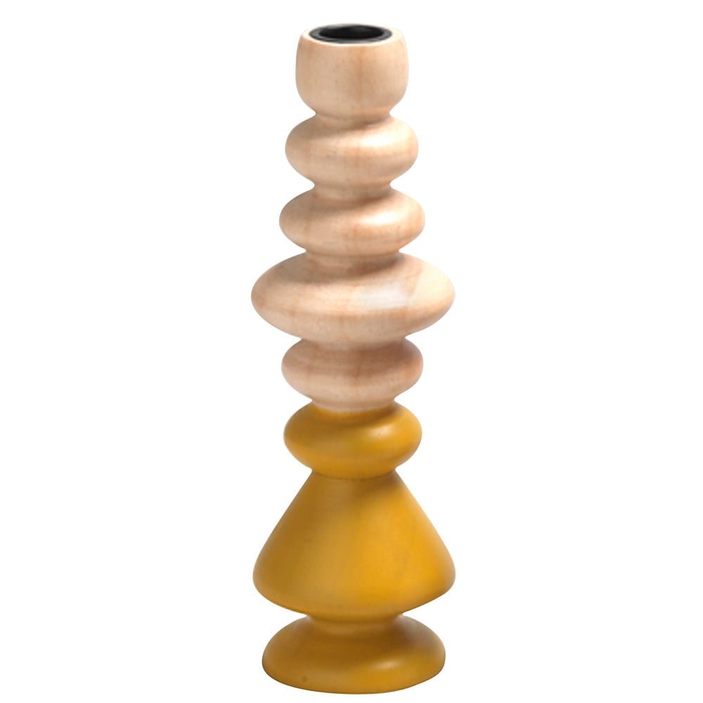 Deze kandelaar van FEST Amsterdam heeft een warme en frisse uitstraling door de combinatie van blank hout met een geverfd gedeelte aan de voet van de kandelaar. Erg leuk om in een groepje bij elkaar te plaatsen.