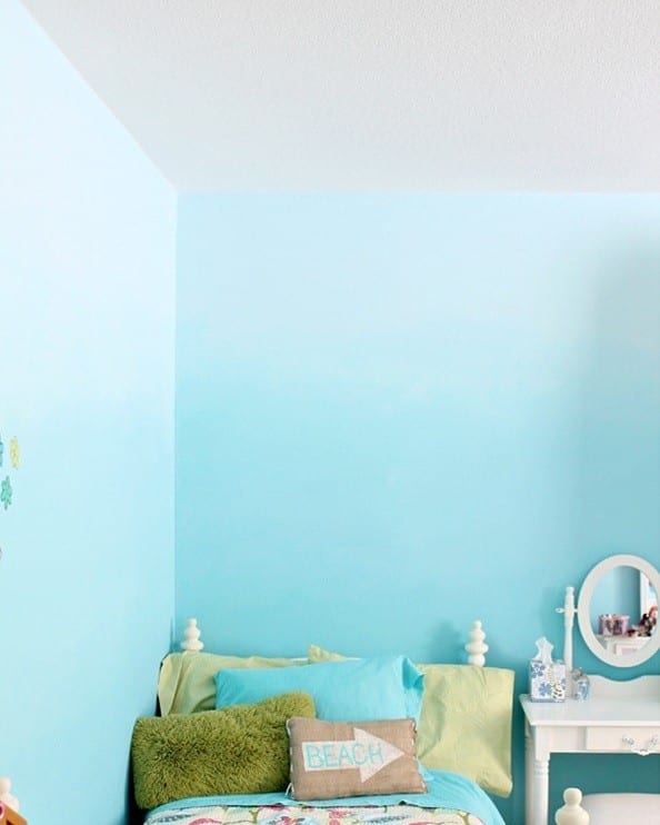 Het ombre effect is niet alleen een trend voor haarkleuringen, nail art en gordijnen. Je muren ombre verven is ook populair. Het ombre effect betekent eigenlijk dat er een kleurverloop aanwezig is. De bovenkant of juist onderkant van de muur wordt geverfd in een lichte tint en loopt vanaf daar verticaal door in steeds donkerdere tinten. Het is aan te raden om hier minimaal drie verschillende soorten verftinten voor te gebruiken. Je kan het ombre effect zo aanwezig maken als je zelf wilt, door te kiezen voor een licht en subtiel kleurverloop of om juist te kiezen voor een groot verschil in de kleuren. Over het algemeen geven ombre geschilderde muren een rustgevend effect, dat ideaal is voor mensen die een bijzondere muur willen, zonder een te heftige uitstraling.