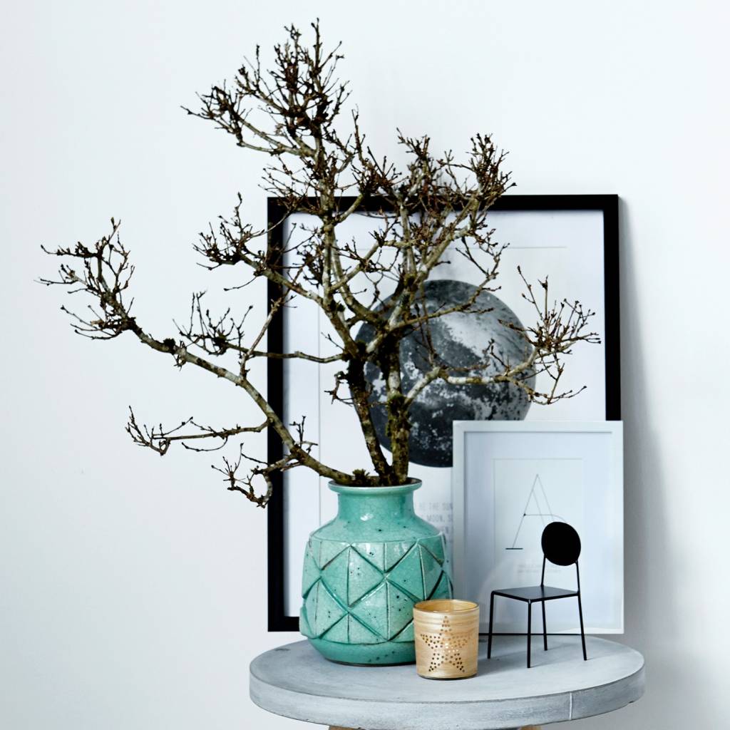 Door het reliëf, de structuur en de mode kleur is dit een favoriet van me. De kleur mintgroen vind ik fris en vrolijk en past bij bijna ieder interieur. Deze vaas van het merk Housedoctor kan je ook gebruiken om decoratie takken in te doen zoals op de afbeelding hieronder. Het merk Housedoctor verrast mij iedere keer weer met een nieuwe verfrissende en betaalbare collectie woonartikelen.